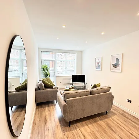 Il Stunning Apartment - 2 Double Bedrooms - En-Suite - Free Allocated Parking - Jq Quarter - Birmingham City Centre - Sleeps 6 Guests - 2 Bathrooms offre una cucina completamente attrezzata insieme a un tostapane e un forno. Ci vogliono 31 minuti di macchina per raggiungere l'aeroporto di Birmingham.